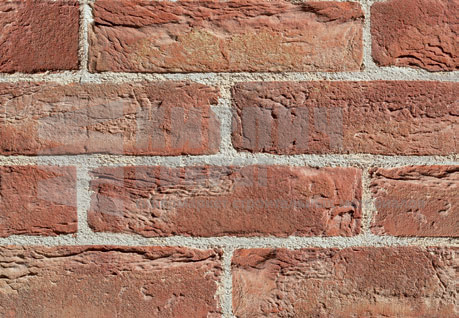 Красный кирпич с песком различного механического состава, каждый кирпич приобретает различные оттенки, обогащая кладку цветами от серого до фиолетового. Рекомендуются растворы светлого цвета, чтобы выделить различные тона изделия.